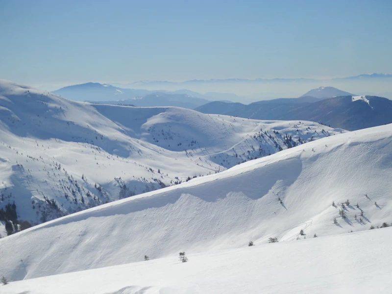 Forget crowded mega-resorts and manicured pistes — Dragobrat is where freeride dreams come alive. Tucked into a high-alpine bowl at 1,300–1,700 m beneath the twin peaks of Stih and Blyznytsia, our little valley catches every flake that drifts across the Ukrainian Carpathians. Natural snow starts piling up in early December (sometime in November) and often lingers well into April, laying down silky powder lines long after many European slopes have turned to slush.