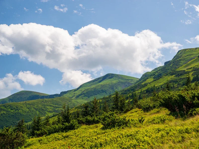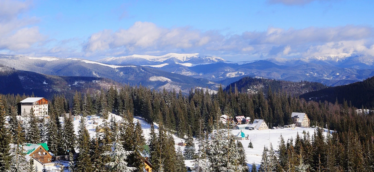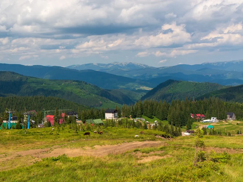 Just 18 km above the village of Yasinia — an easy hop from Slovakia, Poland or Hungary — Dragobrat offers wide-open bowls, gladed gullies, catskiing, and backcountry routes. Crisp mountain air, panoramic sunrise shots, and hearty evenings with steaming banosh, wild mushroom soup, and homemade berry infusions come as standard.