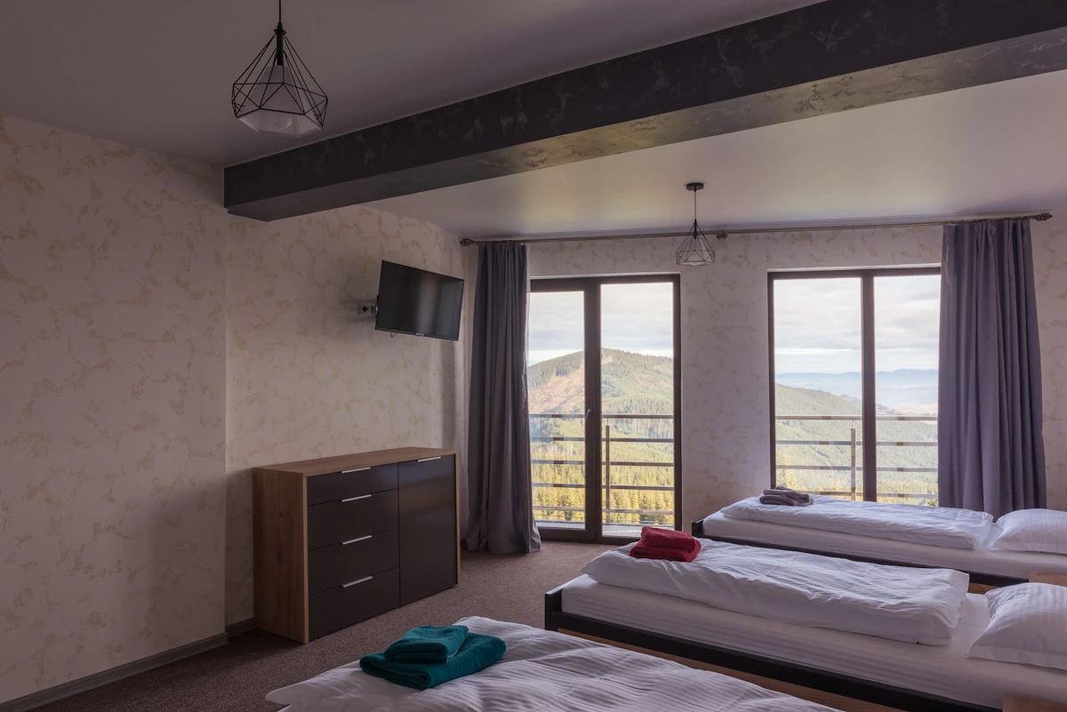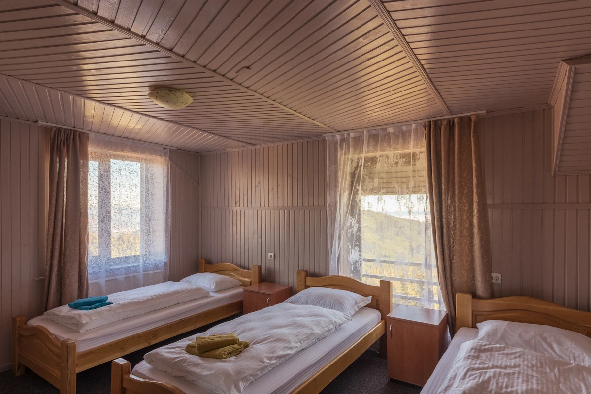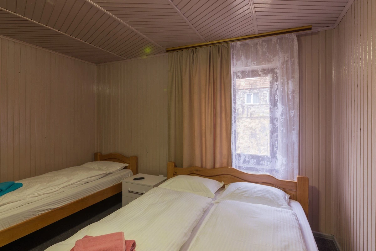 The room is designed to accommodate 3 person. Rooms available in a double bed + 1 single beds configuration or 3 single beds configuration. Each room includes a bedside table, TV, Wi-Fi coverage, clothes rack, closet for clothes. Hairdryer - on request from the hotel administrator. The bathroom has a shower, washbasin, liquid soap, a set of towels. Cleaning frequency - on request, but not more than once every 2 days. Change of linen - on request, but not more than once in 5 days.